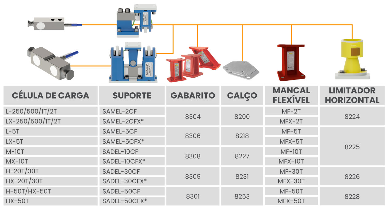 Limitadores Horizontais são utilizados em conjunto com os suportes SAMEL e SADEL, para auxiliar na proteção das células de carga. Evitam impactos provenientes de frenagens brutas e agitações da balança.